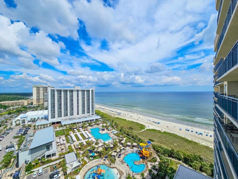 Walk onto one of the three balconies and watch the waves roll in! Three-bedroom, three-bathroom residence has the lock-out feature allowing flexibility of it being used as one and two bedroom or as three bedroom—great rental option. Kitchen has granite countertops and stainless steel appliances. Large primary suite steps on to the balcony. Split bedroom floor plan. Sold furnished, this oceanfront luxury tower is part of Kingston Resort with great amenities. $639,000