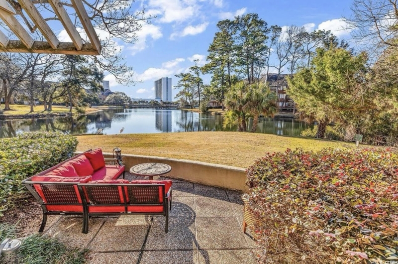 to view the entire length of the lake from the Villa. This two-bedroom, two-bathroom villa is tucked away at the end of a cul-de-sac in Richmond Park. One of the few villas that has both a patio and a covered deck. Rental ready! $359,000