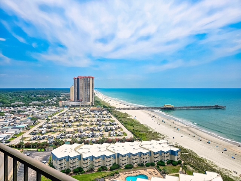 Experience views every day from one of these two large balconies. Enjoy the sunrise and look down the Atlantic coastline into North Carolina. This two-bedroom, two-bathroom residence is fully furnished with over 1,800 square feet. The kitchen has granite countertops and stainless-steel appliances. Large primary bedroom with sitting area, walk-in closet, split bedroom plan. Open floor plan for entertaining and a view from every room. Underground parking, 24-hour security. $695,000
