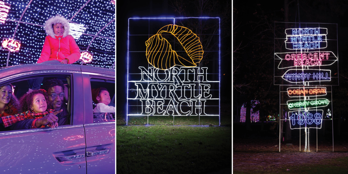 This holiday season marks 10 years that the North Myrtle Beach Park & Sports Complex has presented The Great Christmas Light Show, a drive-through experience featuring millions of lights, lands, animated displays, a Santa’s Village and more – including a petting zoo and a train ride.
