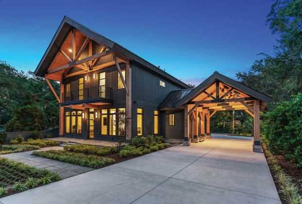 “Terri has a passion for quality materials and home design, which is evident throughout the home,” says Sarah Moniz with CRG Homes. “The architectural style is a contemporary coastal blend with heavy timber accents, vertical Hardi board siding, and modern black-framed casement windows. It also stands out as a showcase home on the inside, featuring cabinet lines by Inspired Finishes, another company owned by Terri, and many upgraded appliances, finishes, and fixtures throughout.”