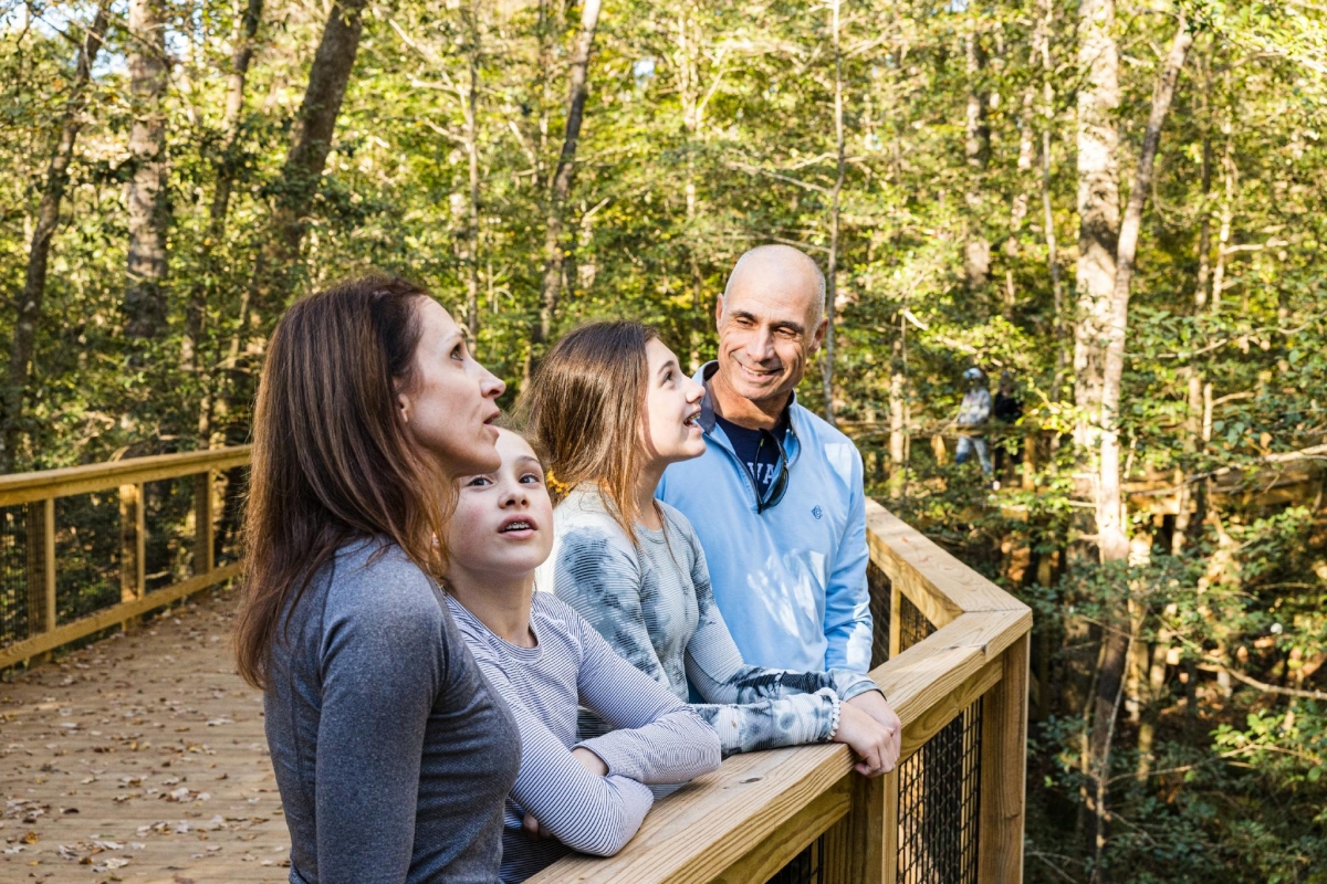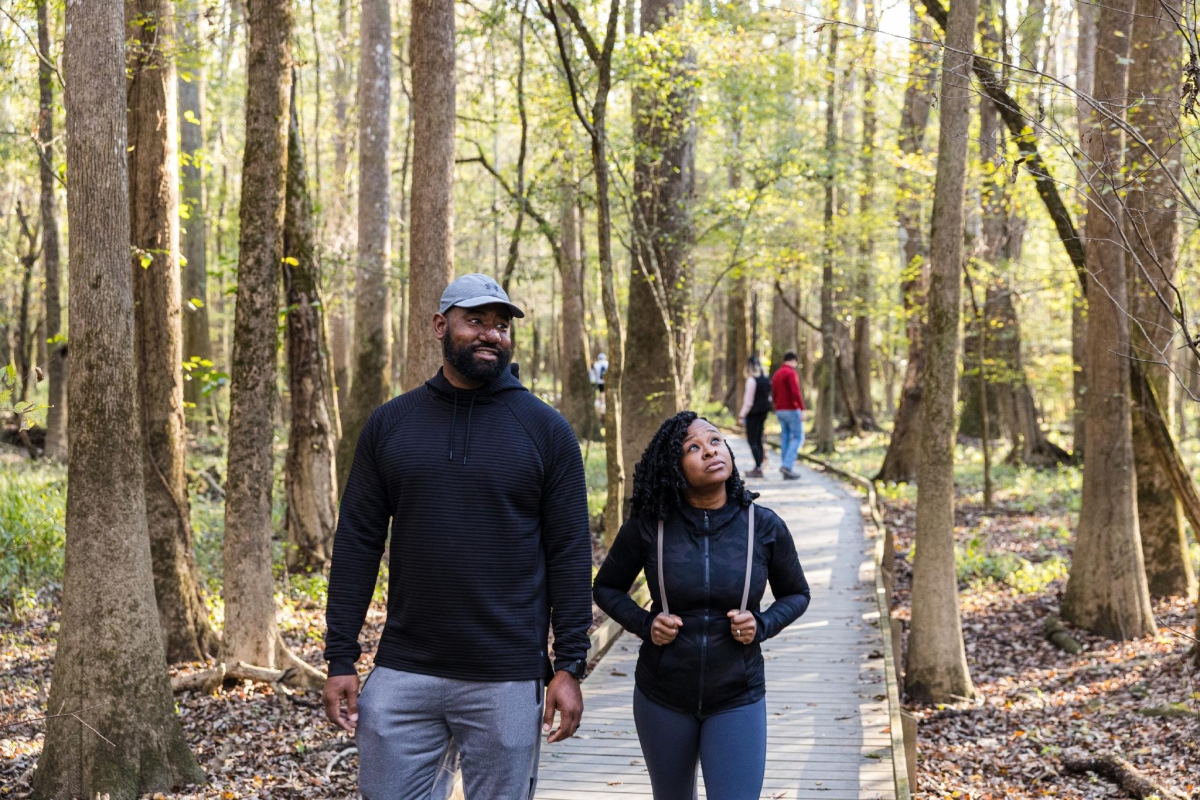 Start with Columbia’s crown jewel: Congaree National Park. Home to the largest intact old growth bottomland hardwood forest, it’s one of the most incredibly biodiverse areas in the United States. Step onto the Boardwalk Trail and watch the scenery shift instantly to ancient bald cypress, soaring loblolly pines and pockets of still water that reflect the sky like glass. The entire 2.6-mile boardwalk is wheelchair-accessible and begins at the Harry Hampton Visitor Center, where visitors can also borrow wheelchairs at no cost and access paved paths to picnic areas and restrooms.