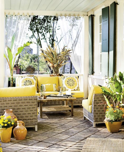 About the Design: Mosquito netting serves as porch curtains for both ends of the house, a fun and classic touch. Designed by Mindy McVay Interiors, (843) 424-3701, mindy@mindymcvay.com.