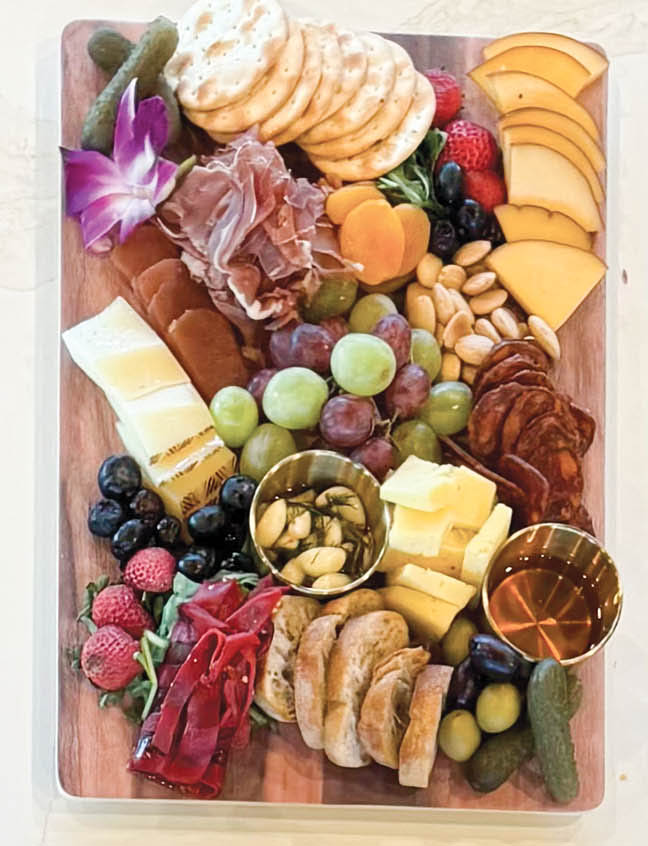 The charcuterie boards are the true star of the show as works of culinary artistry that double as art palettes and are easily large enough to share with two or three people. We chose the Italian Stallion, a spread of burrata, fontina, pecorino, capicola, and salami, plus crackers, fresh fruits, locally sourced honey, and nuts. More boards are the Irish Delight, Queso Con Carne, Sir Eiffel, and Southern Hospitality.