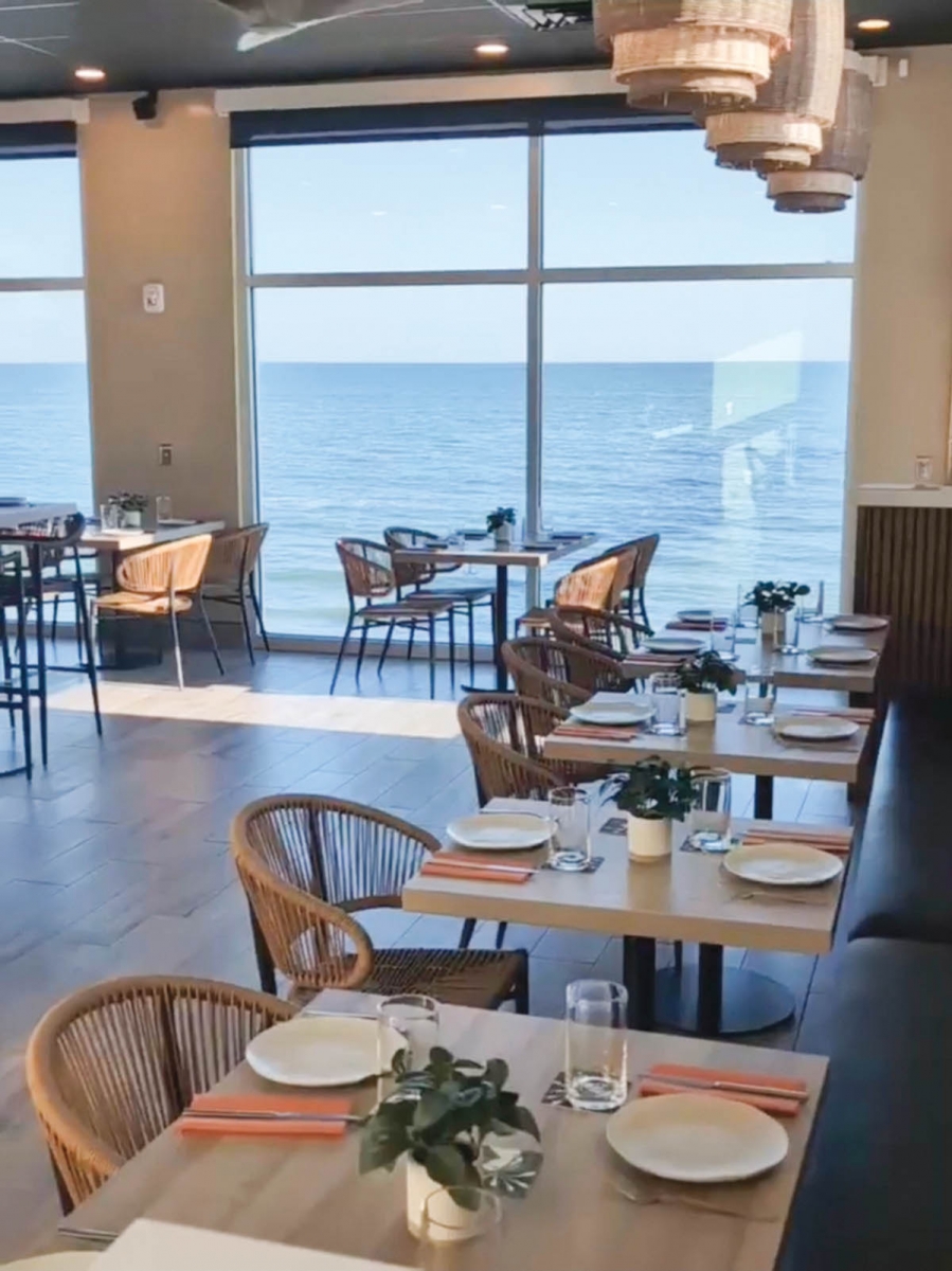 Self-acclaimed as Surfside’s only wine and charcuterie bar on the pier, The Whistling Duck is a beauty drenched in a boho-beach-industrial design, with a centered bar and the piece de resistance: that breathtaking oceanfront view beyond the restaurant’s wall of windows.
